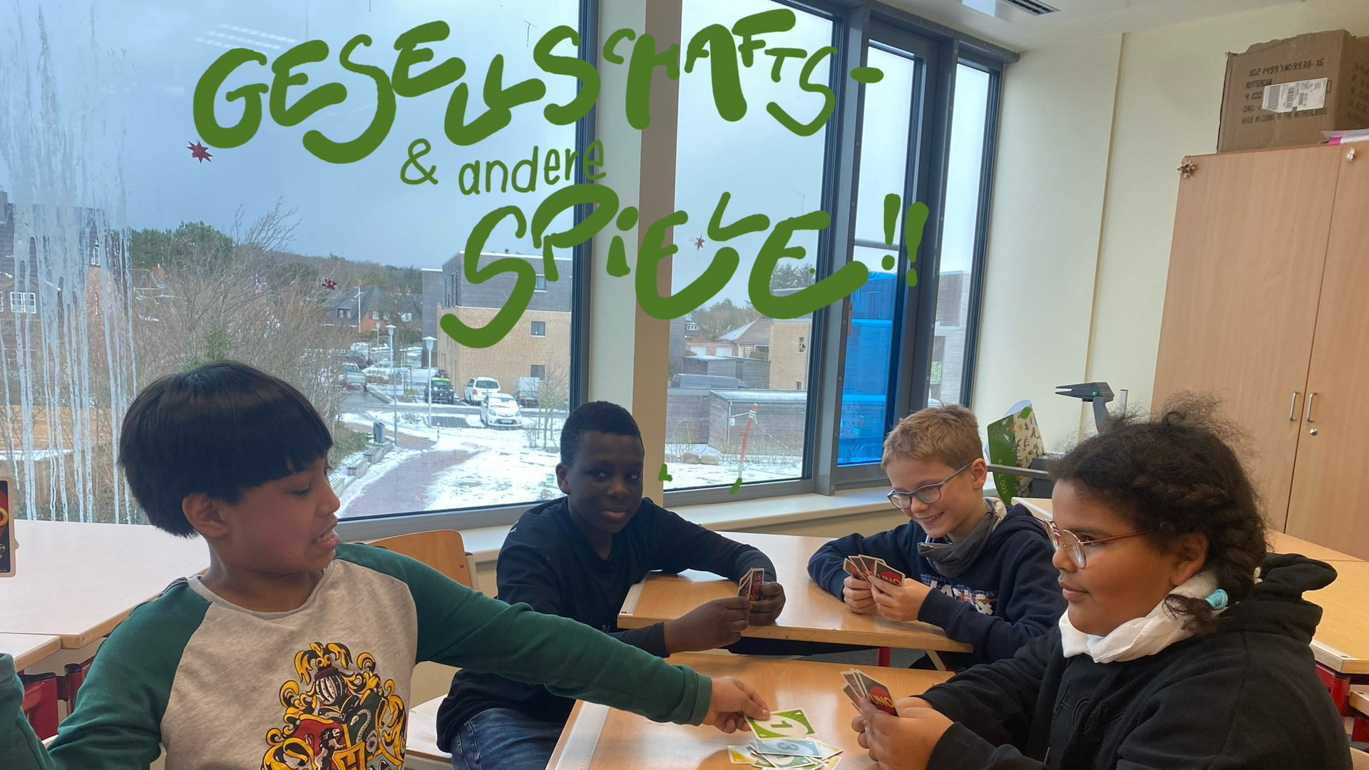 Mensch ärger` Dich nicht! Vor allem nicht hier, in der Spiele-AG. Hier bringt Frau Lorenz alle typischen Gesellschaftsspiele von zuhause mit, die dann mit Mitschüler:innen gespielt werden können. Immer Montags, in der achten Stunde, kommen hier Fünft- und Sechstklässler:innen im Raum 201 zusammen und verbringen 45 Minuten mit den besten Brett- und Kartenspielen. „Nach der Schule, noch Spiele mit meinen Klassenkameraden zu spielen, finde ich echt cool. Es macht sehr viel Spaß hier. Mir machen vor allem die Kartenspiele Spaß. Ganz besonders Mau Mau und Werwolf.“ Erzählt uns Sarah, während sie mit ihrer Freundin Karten spielt. Und auch wir wurden herausgefordertMemory zu spielen, leider ohne zu gewinnen.