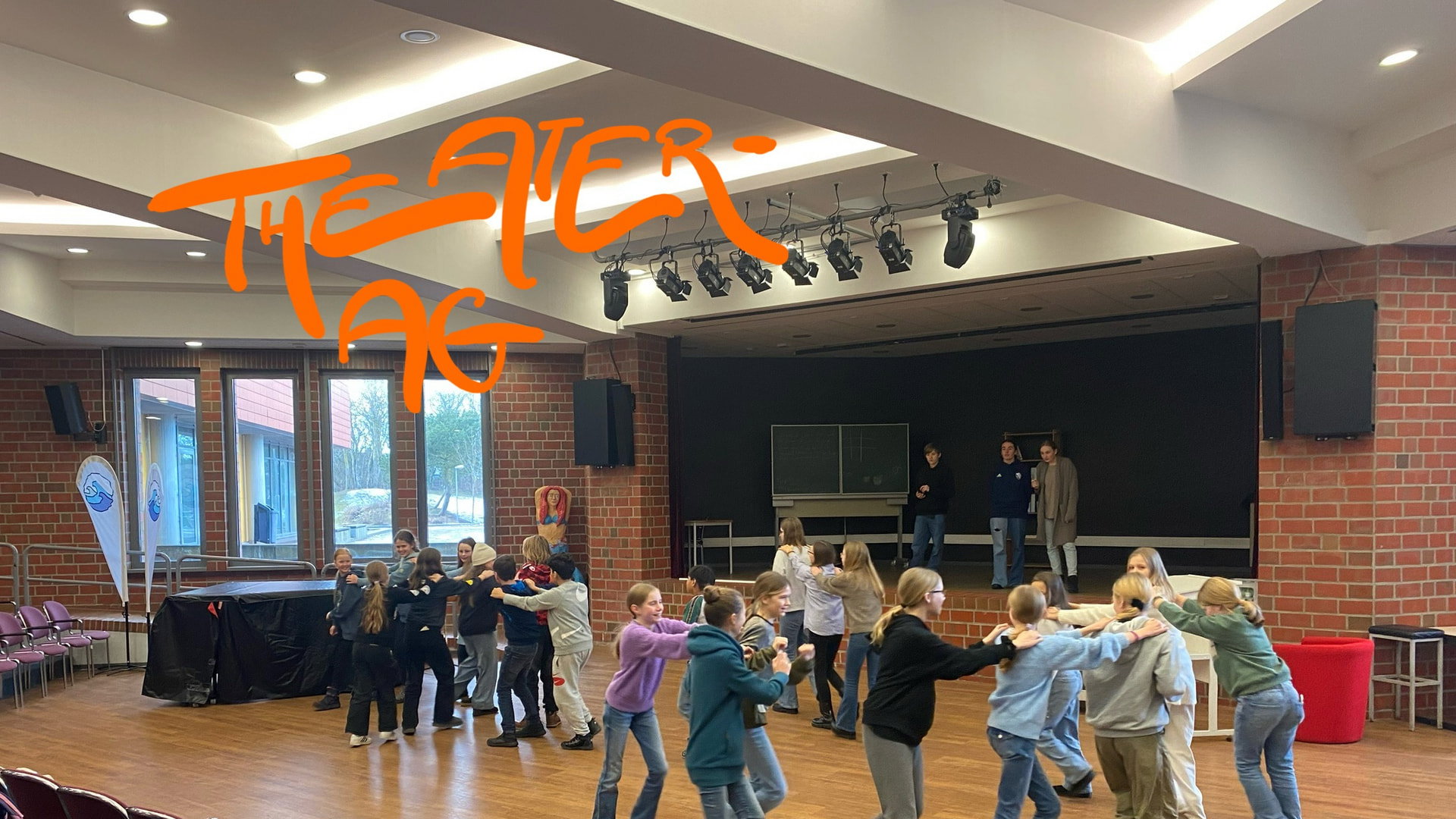 Die Schüler und Schülerinnen der Theater – AG treffen sich jeden Mittwoch zur achten Stunde im Forum, um zu proben. Meist geht es dann direkt mit dem Schauspiel los, manchmal wärmen sie sich vorher aber noch auf, indem sie, wie verschiedene Tiere, durchs Forum hüpfen. Dieses Jahr hat sich die Truppe, geleitet von Frau Kristan, für das Theaterstück „Chaos im Hause Tudor“ entschieden. Neben den Schüler:innen aus den fünften und sechsten Klassen, mischen auch Helen und Karla aus dem zehnten Jahrgang mit.